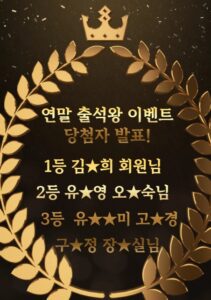 우선 1등을 차지하신 김⭐️희 회원님은 매일 오전 8-9시 타임에 주5회씩 꼬박꼬박 나오셔서 1등을 쟁취하셨다. 1등 상품은 운동복 상.하의세트다. 건강해지기위해 열심히 운동하신다는 후기를 남겨주셨다.다음으로는 2등하신 ⭐️영님은 단한번도 예약을 놓치신 적 없이 정말 성실하게 출석해주시고 같은 아파트 주민이신 회원님과 짝꿍처럼 시너지를 발휘해주시며 다니신다. ⭐️숙님은 그 전에 여러 센터들을 많이 다녀보신 경험이 있으시고, 그 중 감사하게도 유유히필라테스의 수업이 너무 재밌어서 n년 꾸준히 나오시다보니 이제는 엉덩이도 생긴 것 같다고 웃으면서 말씀해주셨다고 한다. 2등 상품은 레깅스이다.마지막으로 아쉽게 2등과 1회 차이로 3등하신 ⭐⭐️미님과 ⭐️경님과 ⭐️정님 ⭐️실님이다. ⭐⭐️미님은 항상 미소가득한 얼굴과 밝은 인사로 출석해주시는 회원님이신데 어머님과 함께 저희 유유히에서 어느덧 3년차 수업을 진행하고 계신다. 매번 땀 뻘뻘 흘리고 가시며 정말 열심히 나오시는 분 중 한분이다.⭐️경님은 무지외반증과 무릎 불편감을 호소하셨던 분이였는데 필라테스 진행하시면서 체중감량도 하시며 삶이 운동 전과 후로 나뉜다고 말씀해주실 정도로 큰 효과를 톡톡히 보고 계시다.⭐️정님은 유유히필라테스에 온가족이 함께 다니시는데 ⭐️정님을 선두로 따님과 맨즈필라테스로 남편분,시니어필라테스로 어머님까지 필라테스의 매력을 가족과 온전히 나누고 계시는 건강한 마인드의 소유자시다.⭐️실님은 매번 웃는 얼굴로 오전이나 오후나 시간 나실때마다 출석해주시는 분으로 그야말로 운동이 일상이 되신 분인데, 수업 받으실땐 항상 힘들다고 하시지만 끝나고 나서는 오늘도 해냈다고 하시며 유쾌한 분위기를 주도해주시는 분이다. 3등 상품은 토삭스다. 소개시켜드린 분들 모두 룩스필라테스 다산도농점일때부터 장기권으로 재재재재등록중이신 운동매니아 분들이다. 사실 처음부터 운동을 좋아하지 않으신 분들이 대부분이신데 유유히필라테스와 함께 하시며 출석 한번 못하시면 일상에서의 허전함을 느끼실 정도로 필라테스의 매력에 흠뻑 빠지셨다고 말한다. 운동이 처음이신 분들, 실력있는 곳에서 배우고 싶으신 분들, 필라테스를 제대로 접해보고 싶으신 분들, 쾌적한 환경에서 운동하고 싶으신 분들 모두 유유히에서 환영한다고 한다.
