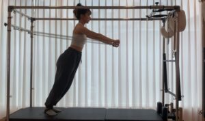 기구 캐딜락을 이용한 필라테스 전신운동 2가지를 소개하려고 한다. 먼저 첫번째 동작이다.