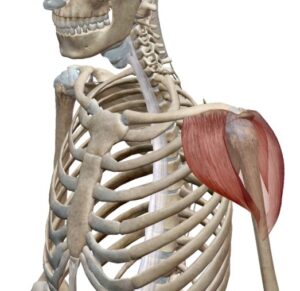 어깨는 세 부위로 나뉘어 있는데 그중 전면삼각근은 쇄골 가쪽 1/2, 측면삼각근은 견봉(어깨 끝에 튀어나와있는 부위), 후면삼각근은 견갑극에 연결이되며 삼각근 조면에 붙는다. 전삼각근은 굴곡, 내회전, 수평내전의 역할을하고 측면삼각근은 외전, 후면삼각근은 신전, 외회전, 수평외전의 역할을 하고 상완골을 상승시킨다. 과하게 상완골이 상승이되면 극상근 힘줄이 지나는 견봉하공간이 좁아지면서 상완골을 위로 상방활주를 시키며 관절의 충돌을 유발시킨다. 회전근개파열이 이렇게 일어난다. 삼각근은 모든 움직임을 갖고있기 때문에 이완해서 풀리는 근육이 아니다. 검사방법으로는 어깨를 90도 외전시키고 수평내전 20도를 만든다. 엄지손가락을 내리고 검사자가 팔내릴때 버티도록 한다. 동작시 통증이 일어난다면 삼각근 과활성화로 충돌이 되며 삼각근 운동을 중단해야한다.