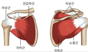 회전근개로는 극상근, 극하근, 소원근, 견갑하근이 있고 상완골두를 하강시키는 역할을 한다. 크기가 작기 때문에 어깨 관절의 안정화 근육이다. 극상근은 견갑골의 극상와에 붙어서 상완골 대결절에 붙어있다. 외전을 시키는 역할을 한다. 초기 22-25도 외전에 작용을 한다. 30도 이상부터는 중삼각근에 대항을 한다. 샴페인 건배운동은 삼각근 개입을 최소화시키는 동시에 극상근을 활성화시키는 대표적인 운동이다. 팔꿈치를 90도로 굴곡시키고 손바닥 천장 밴드를 당겨 외회전을 시켜준다. 30도 외전을 시켜 2초 유지하고 제자리 돌아온다. 극하근은 견갑골 극하와에 붙어 상완골 대결절에 붙는다. 외회전과 수평외전의 역할과 후삼각근에 대항하는 역할을 한다. 견갑거근은 견갑골 견갑하와에 붙어 상완골 소결절에 붙는다. 내회전의 역할과 전삼각근에 대항하는 역할을 한다. 상완골의 전방활주를 막아주는 대표적인 부위기도하다. 운동으로는 운동하고자 하는 팔 열중셧자세 후 반대손으로 견갑하근을 촉진하고 상완골두가 움직이지않게 손바닥을 뒤로민다. 2초 유지후에 제자리 돌아온다. 견갑하근을 수축해도 상완골이 앞으로 빠지면 잘못된 운동이다. 운동 후에 샴페인 건배운동을 했을때 전 후 차이가 있는지 확인해 볼 수 있다. 어깨 아픈 사람들에게 좋은 정보들이다.