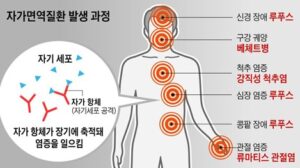 자가면역질환은 우리 몸을 보호해야 할 면역체계가 외부의 세균이나 바이러스가 아니라 자신의 세포와 조직을 적으로 인식해 공격하는 상태를 말한다. 정상적인 면역 시스템은 ‘자기’와 ‘비자기’를 정확히 구분하지만, 자가면역질환에서는 이 구분 기능에 문제가 생겨 만성적인 염증 반응이 지속되고 그 결과 통